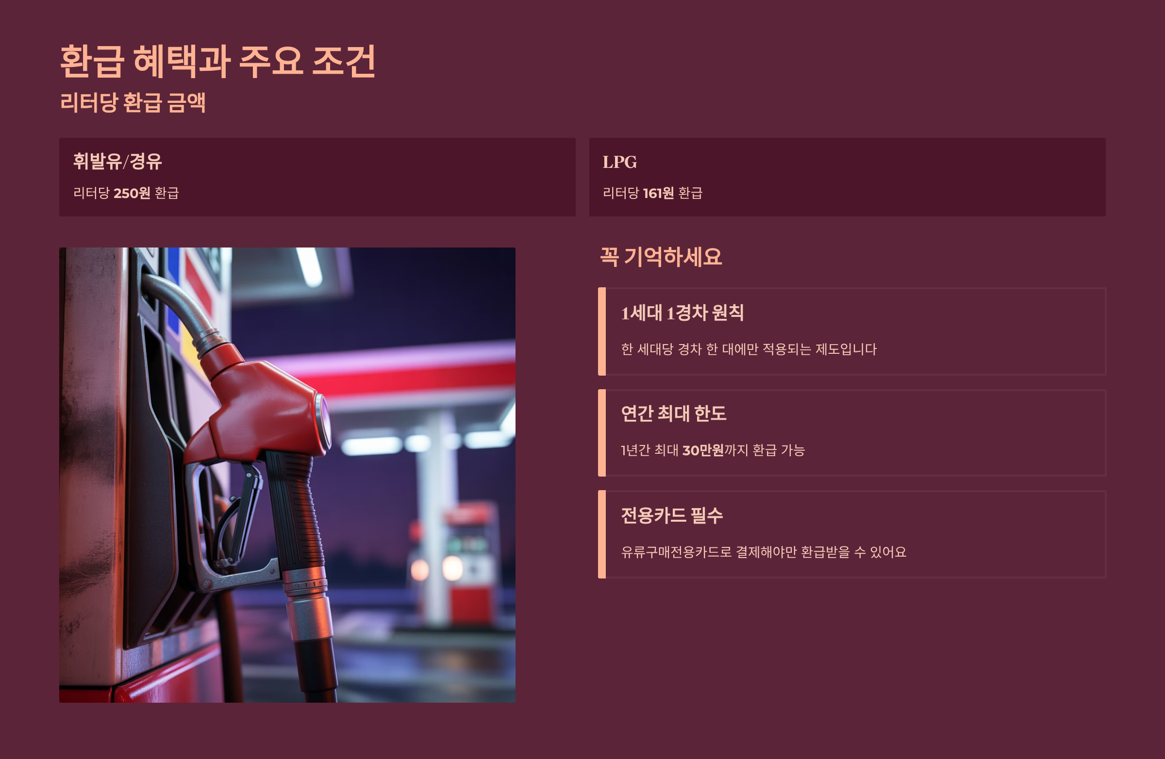결제 조건: 반드시 유류구매전용카드로 주유해야 적용
