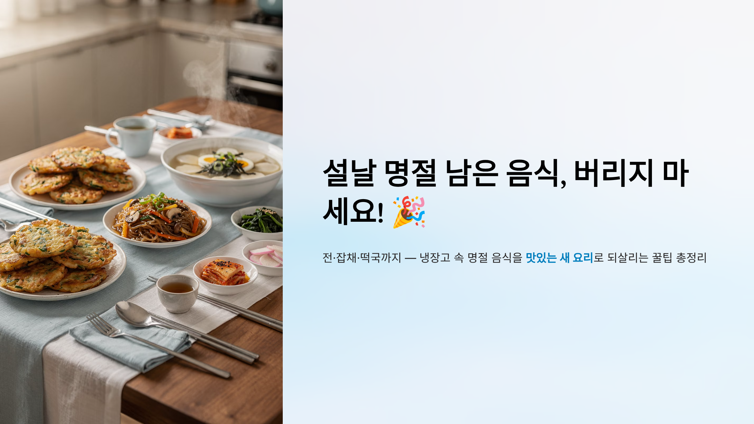 전, 잡채, 떡국 떡, 나물까지… 버리기엔 아깝고, 그대로 먹자니 질리기 쉬운 음식들이죠.
