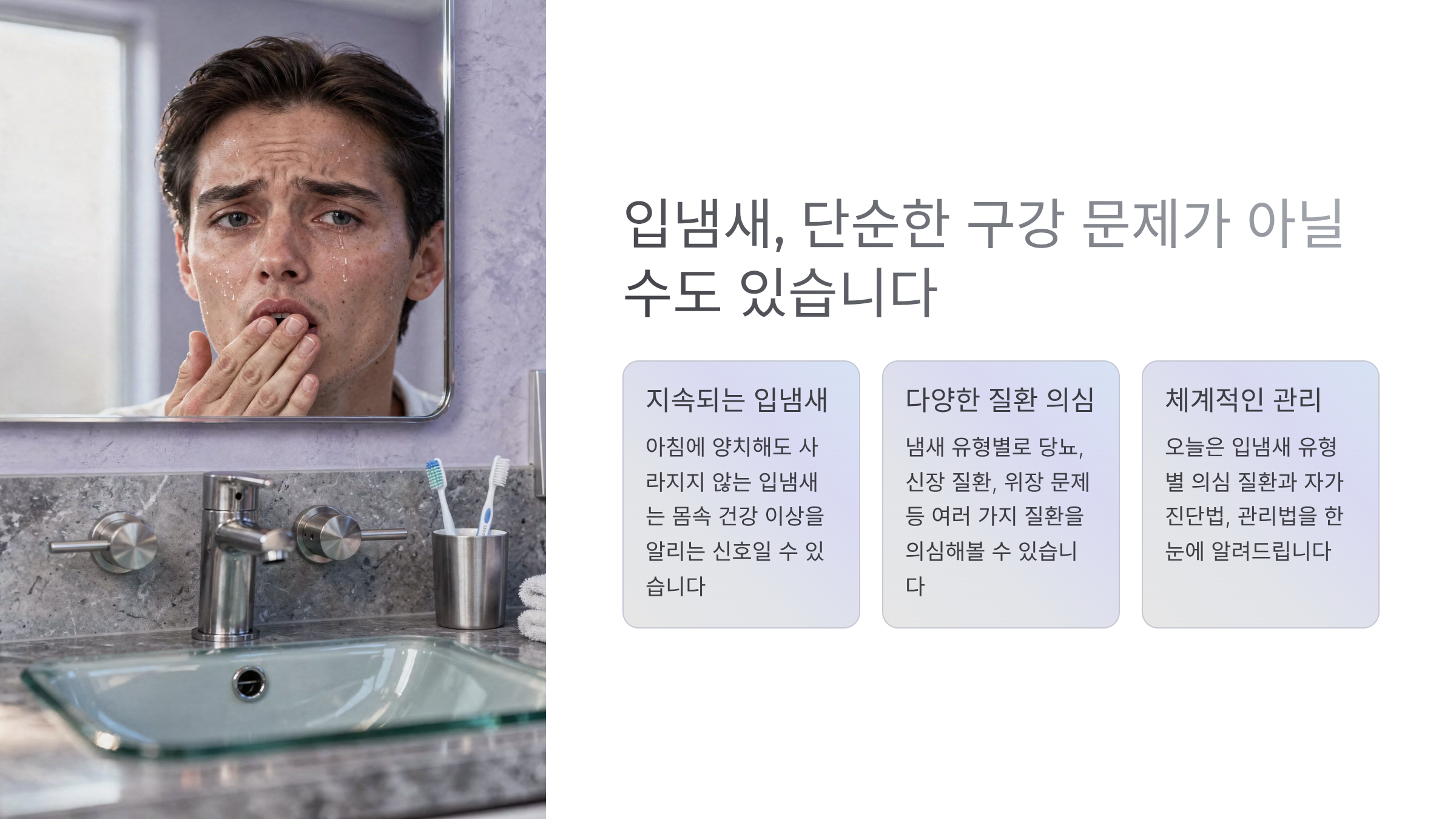 | 입냄새 원인 7가지|대부분 모르는 핵심 포인트 총정리 (1) | 2026.02.02 |