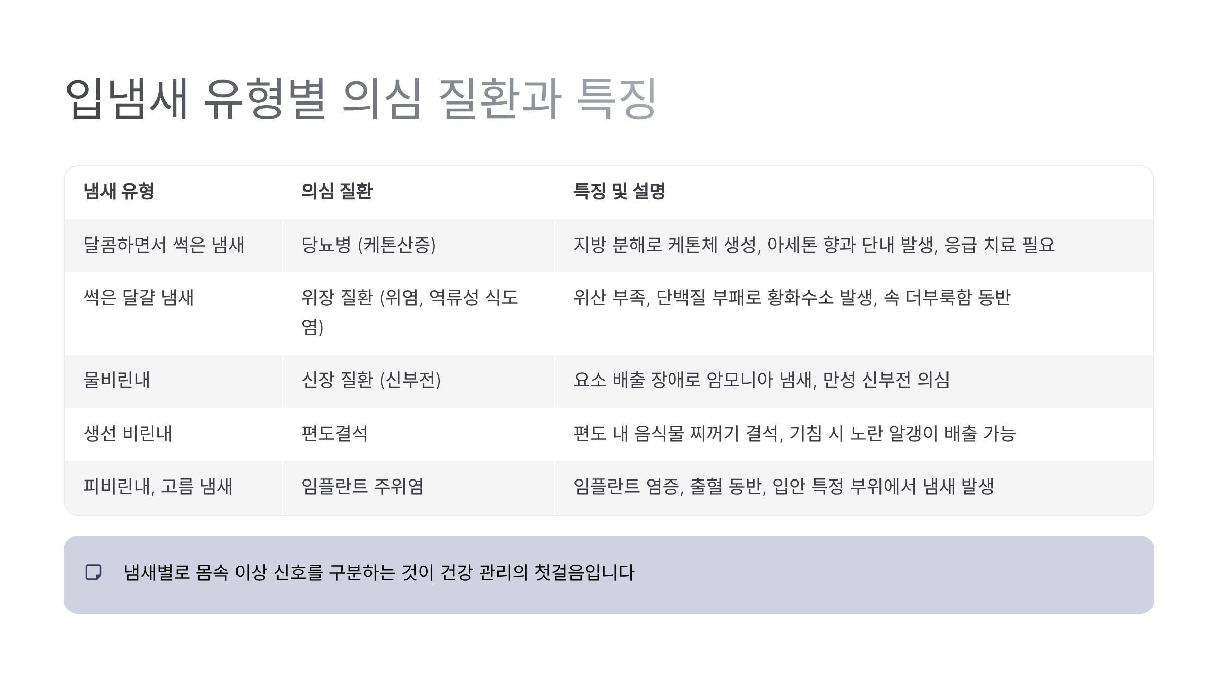 | 입냄새 유형 | 의심 질환 |
