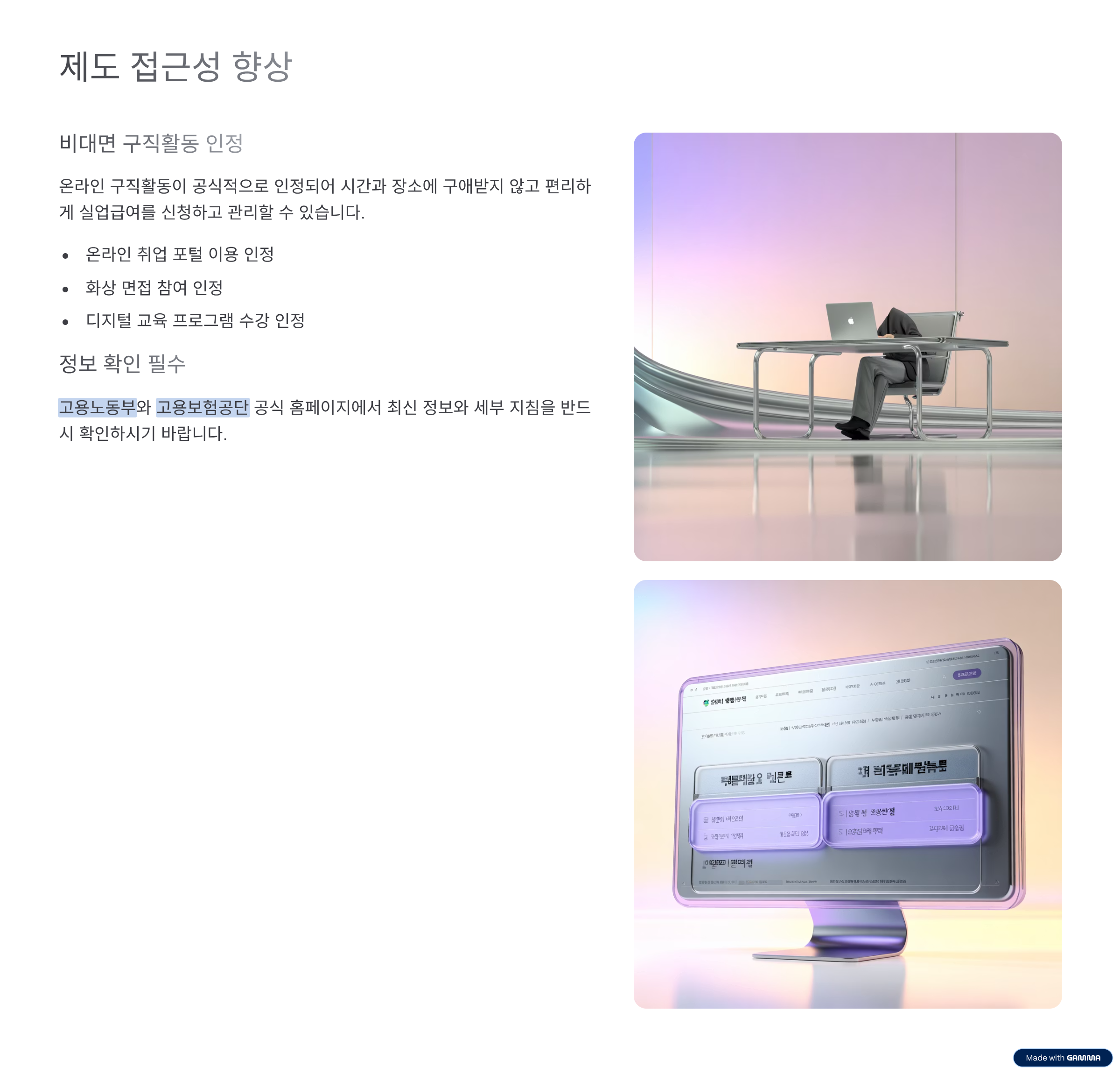 - 온라인 재취업 활동 인정 확대: 비대면 취업특강, 원격 면접 참여도 인정