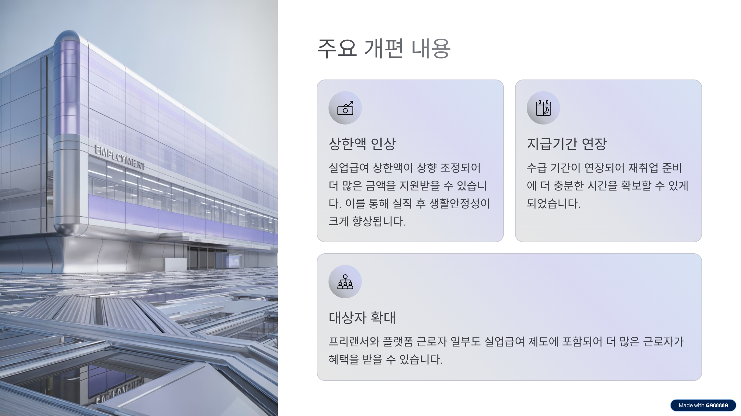 - 지급 대상 확대: 플랫폼·프리랜서 일부 직종도 조건부 수급 가능
