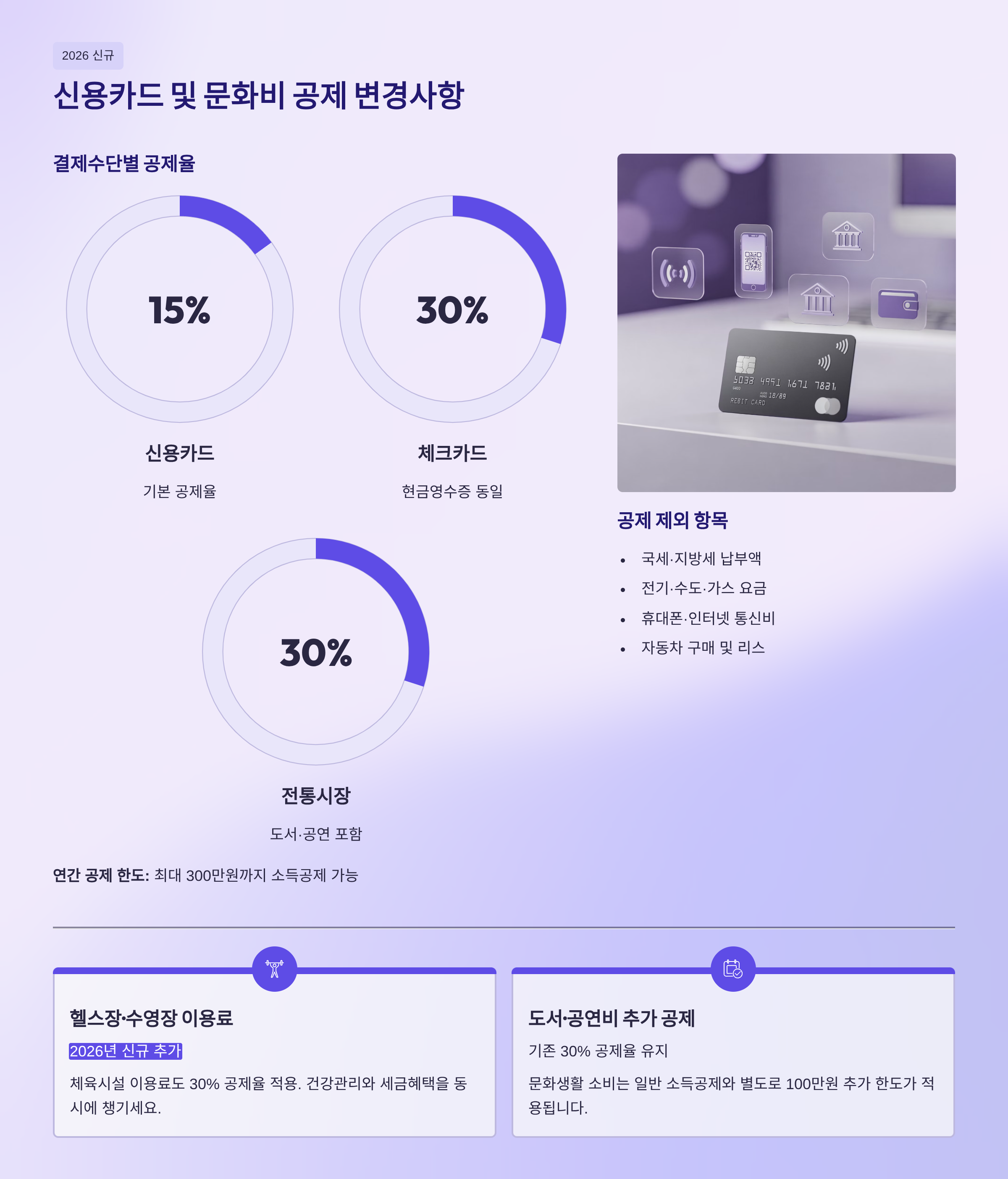 - 신용카드 소득공제 연장: 기존 공제 종료 예정에서 2026년까지 연장