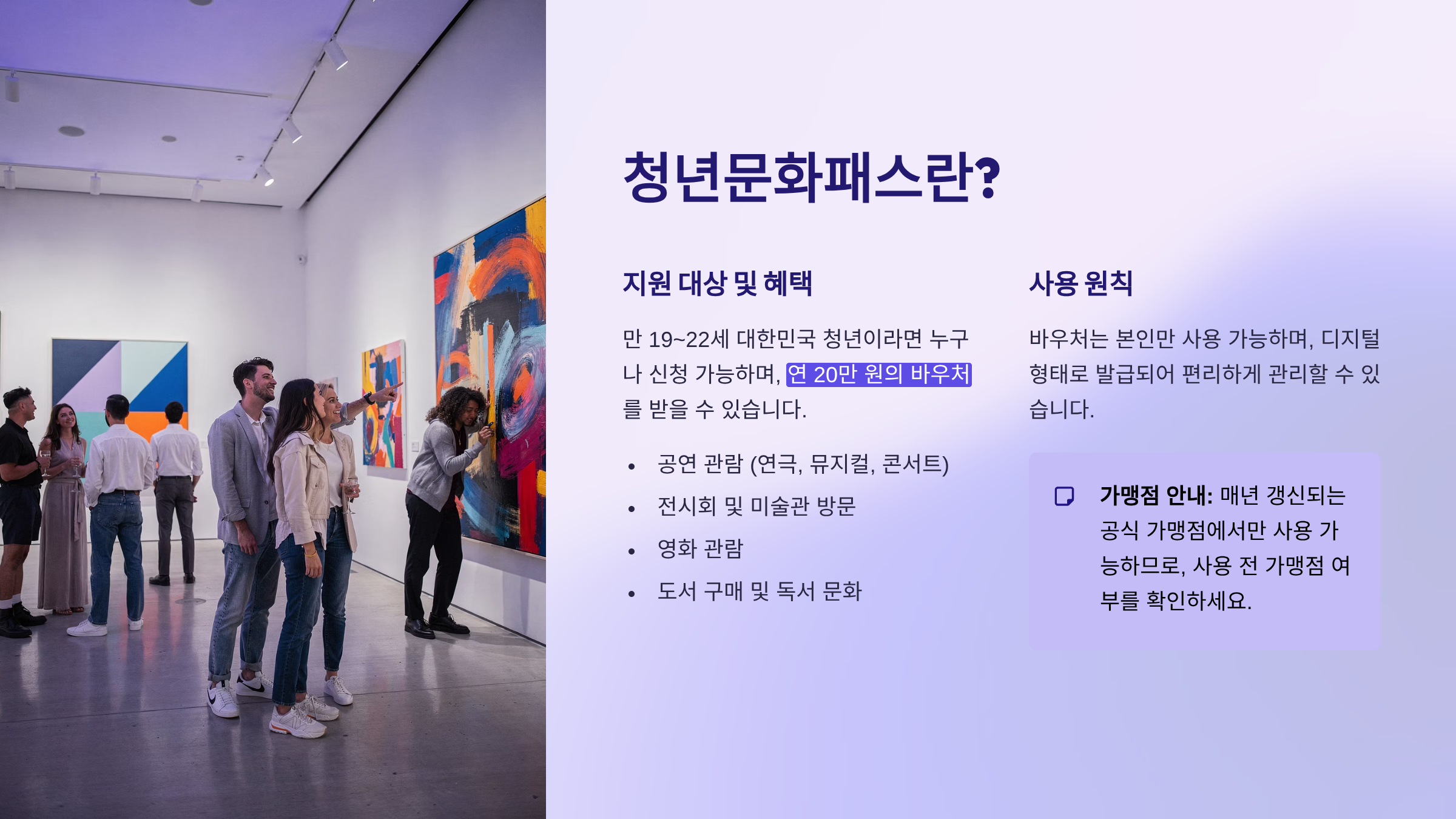 🎟️ 청년문화 바우처로 공연, 전시, 영화, 책까지 자유롭게!