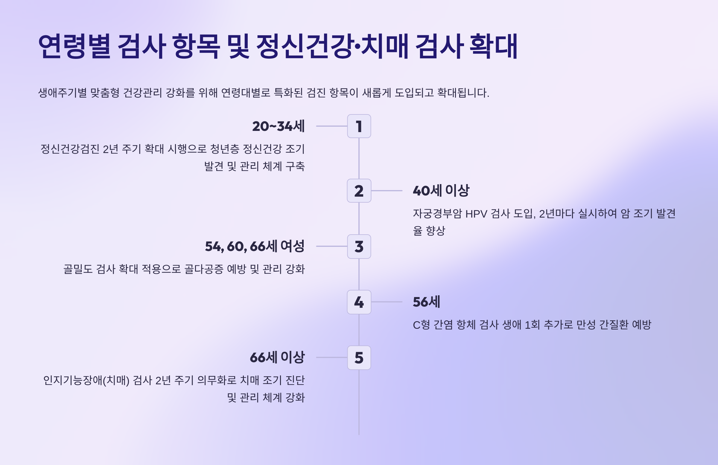 2026년 건강검진에서는 다음과 같은 주요 변화가 있습니다.